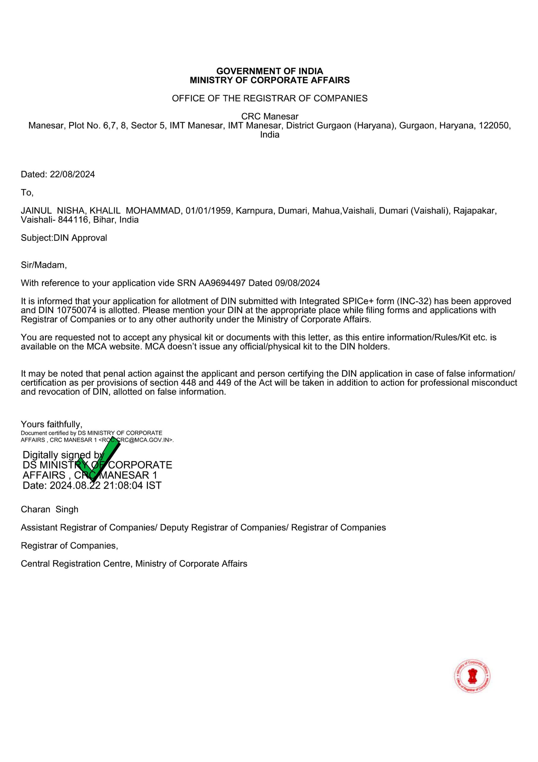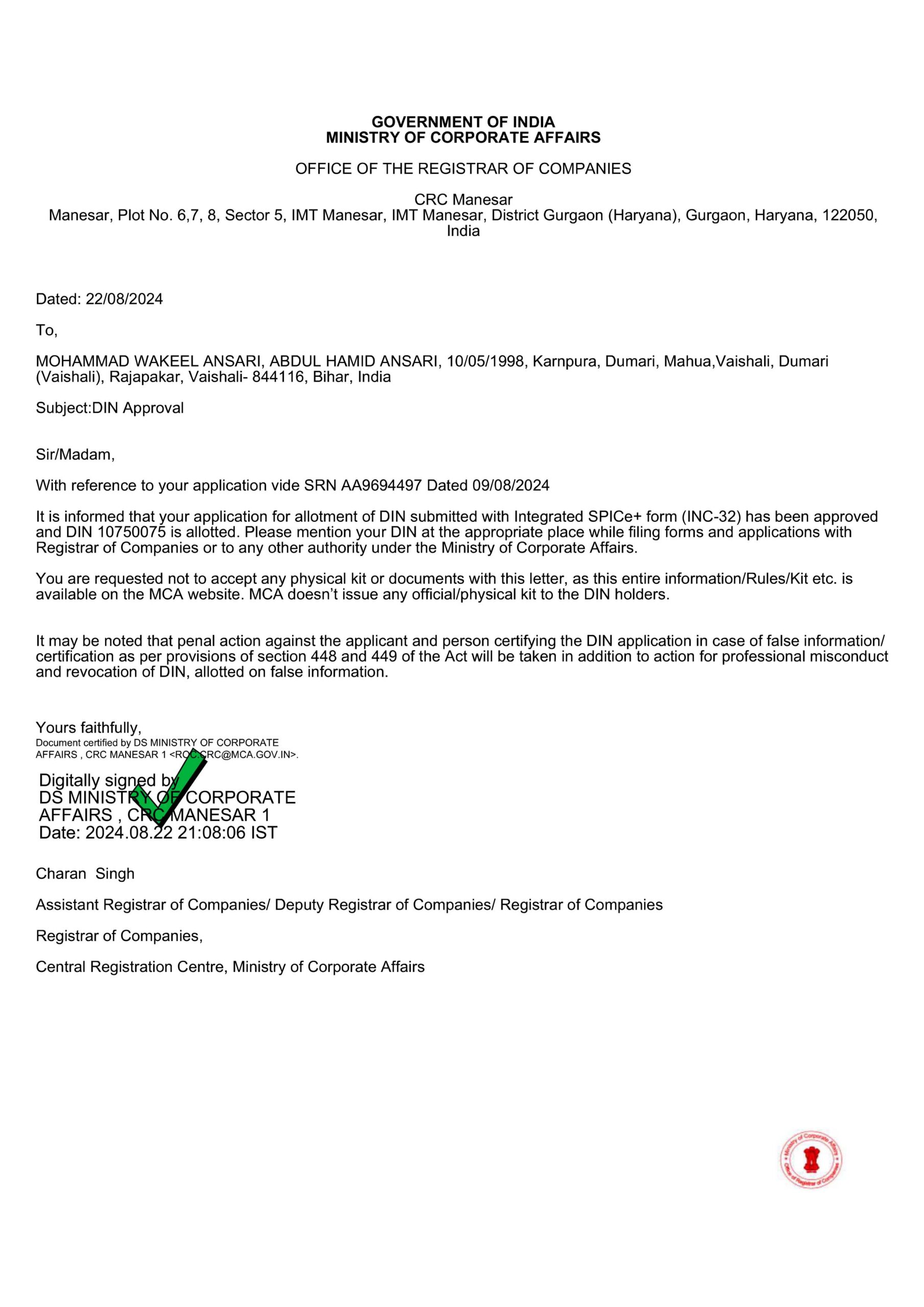 Director Identification No-