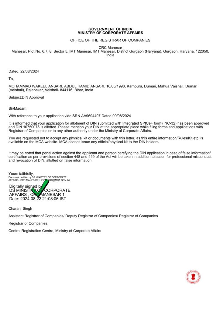 Company Incorporation No - U46909BR2024PTC071000